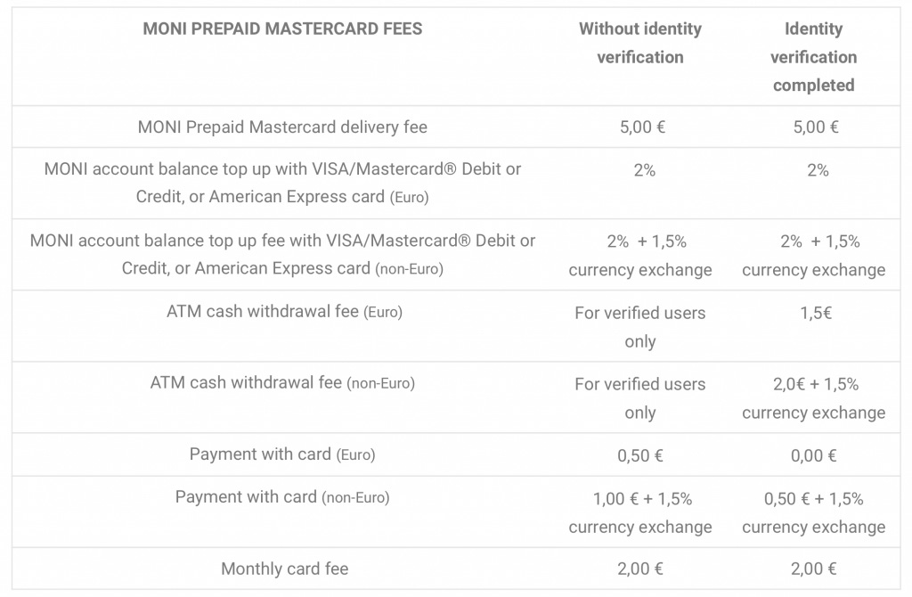 說到這裡,你可能已經開始好奇 MONI 公司如何賺錢。他們靠的是轉入、轉出 MONI 帳戶的手續費,以及每個月的卡費 2 歐元維持營運。