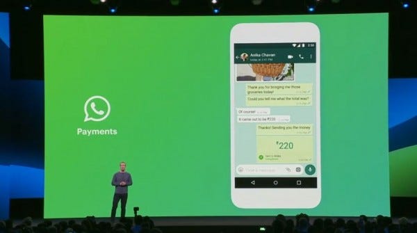 當然不是。祖克柏在這次 F8 大會上提到,臉書旗下的 WhatsApp 在印度已經有 100 萬用戶使用他們最新推出的線上轉帳服務。雖然祖克柏沒有明說,但去年底彭博社就曾報導臉書在印度的這項轉帳服務,即是仰賴區塊鏈技術完成。