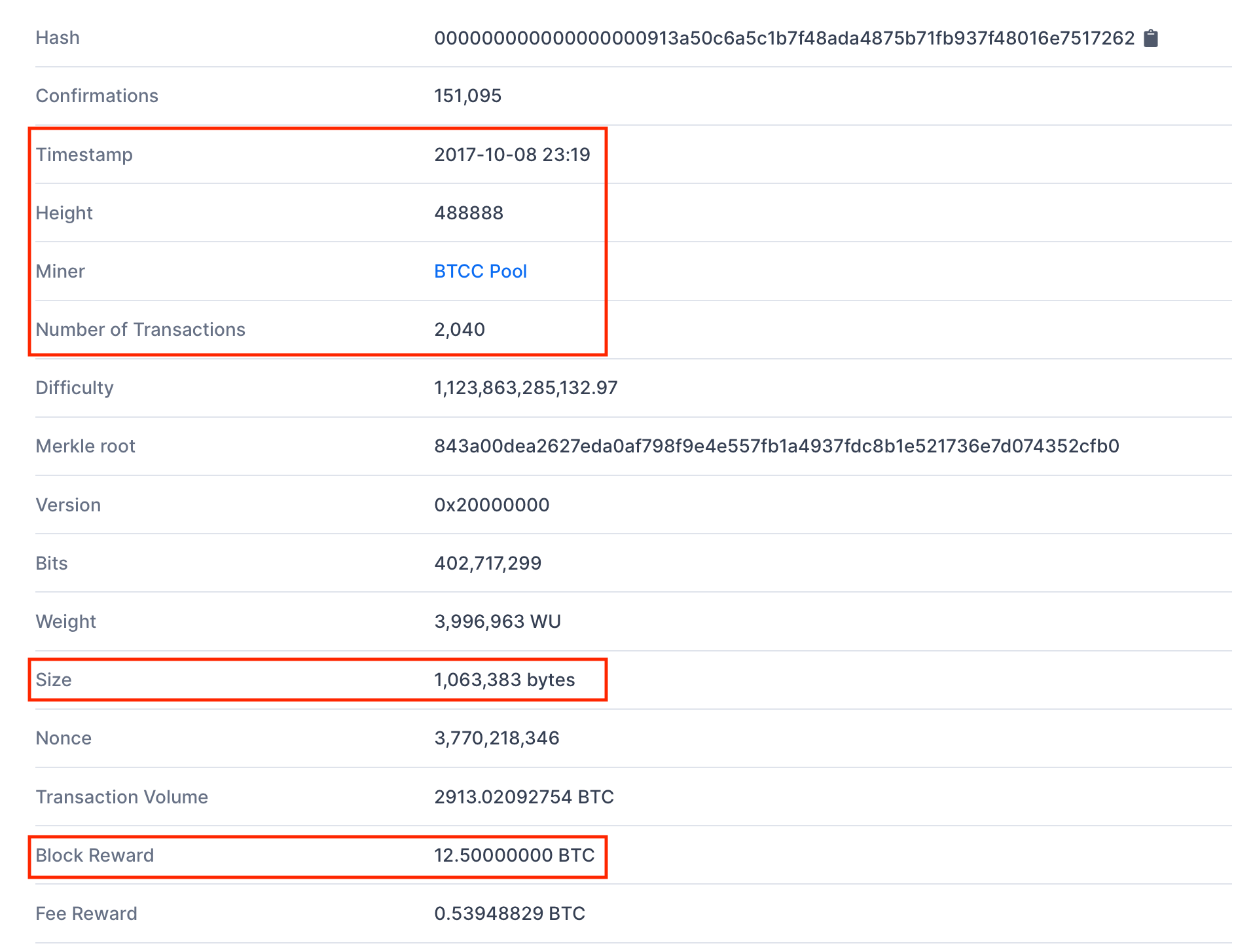 比特幣的帳本平均每 10 分鐘新增一頁,也就是說在 10 分鐘以內的數千筆交易都會被記錄在同一頁上。這本帳本現在已經有 63 萬頁左右,幸好這不是紙本記錄不然會非常厚重。我建議你點進去其中一頁看看,你會發現頁面上方有一些這頁的資本資料,以及下方的每一筆交易紀錄。