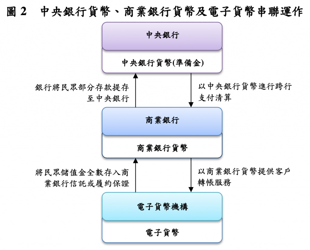 由央行提供發行的信任基礎及相關跨行清算服務,透過公私部門合作方式 ... 民間電子貨幣機構可發揮支付創新、業務推廣、客戶服務等專長,並負責 KYC、反洗錢等業務。