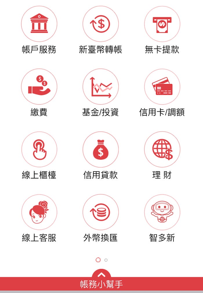 目前銀行的 app 也有相同的問題。打開銀行 app,就像是有人問你今天要辦理的業務是存提款、貸款還是購買外幣?選項多到令人眼花撩亂。這是用實體銀行的思維,打造網路銀行。實體分行多半開在市區的精華地段,才有足夠的人流。在店租、人力的營運成本考量之下,銀行會盡可能在實體分行內提供最完整的服務。