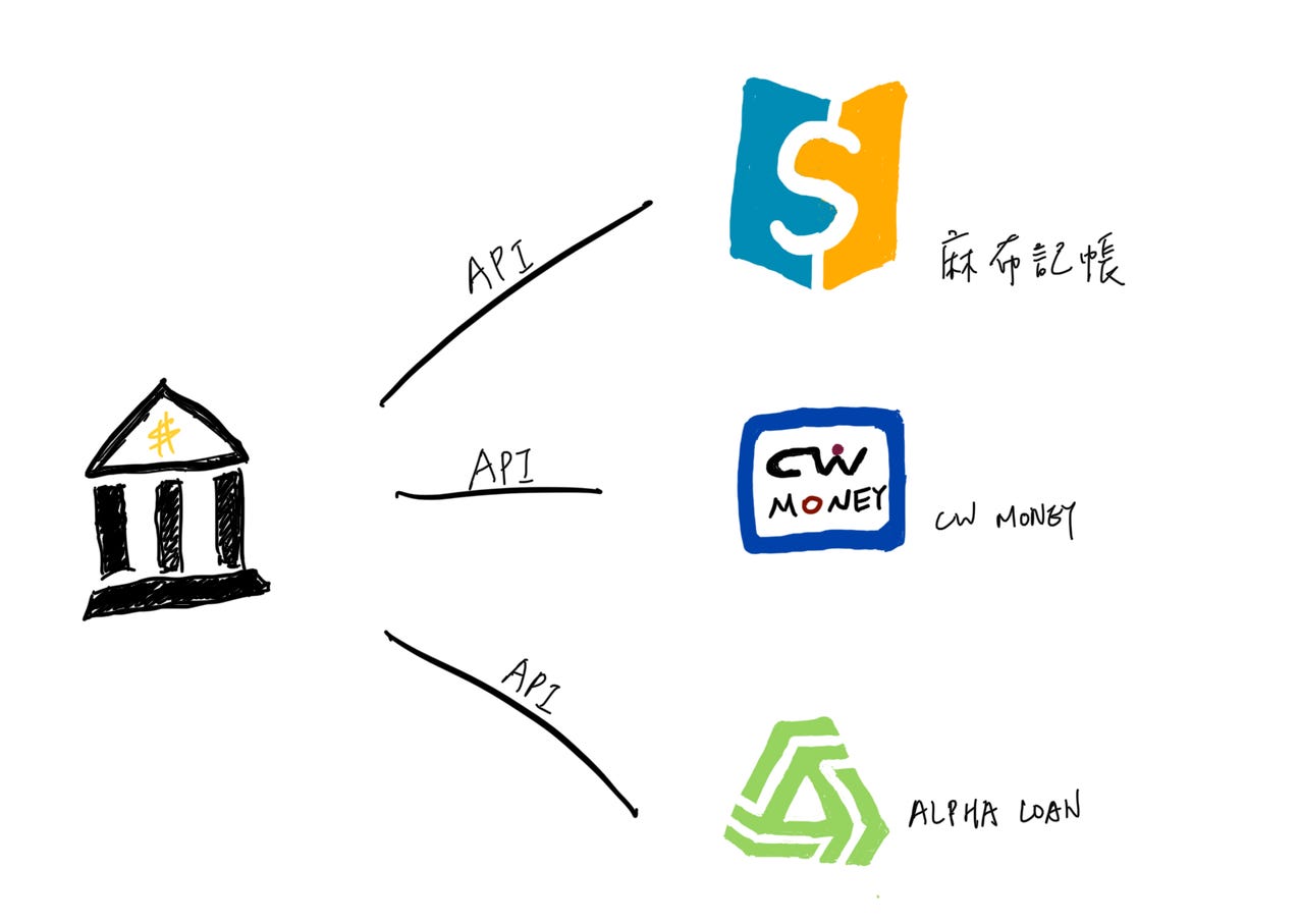 現在輪到銀行透過 API 對外開放金融資訊。當記帳 app 串接各家銀行的 API 之後,未來只要獲得用戶的授權,就能幫人們即時同步當下存在不同銀行內的總資產。這比以前得自行手動加總,或是把帳號密碼交給記帳 app 代替你登入網銀,還來得更加方便且更安全。記帳 app 有了你的資產總額之後,就可以進一步推薦你合適的金融投資商品或是廣告。隨著銀行開放的 API 形式日漸多元,不僅記帳 app 會拆分銀行的餘額查詢業務,其他金融科技新創甚至與金融八竿子打不著的手遊 app 也都可能會加入戰局,為人們提供金融服務。