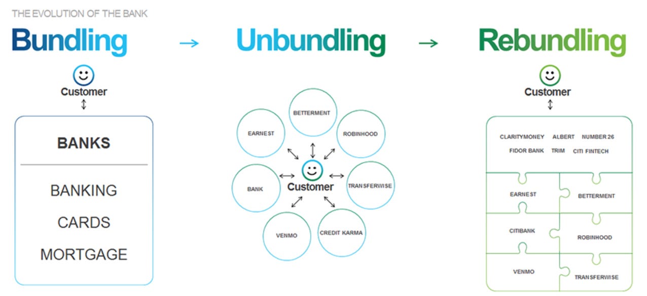 花旗銀行在下方這張圖中,就清楚描繪銀行從綑綁、拆分到重新綑綁(rebundling)的過程。