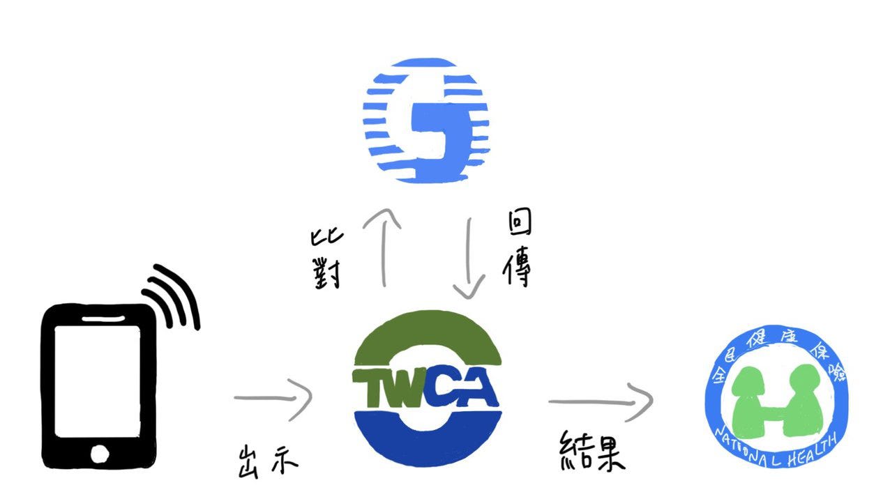 以「健保快易通」為例,TWID 身分識別中心在 2018 年就與電信商建立「數位證件」的查驗機制。畢竟用戶在取得 SIM 卡的同時,也等於在電信商櫃檯做過實名認證。現在數位檢查哨只要請使用者透過 SIM 卡向電信公司發送一個簡單的訊號,同時再向電信商確認是否有收到該訊號。比對之下,TWID 身分識別中心就能告訴「健保快易通」使用者身份認證結果。