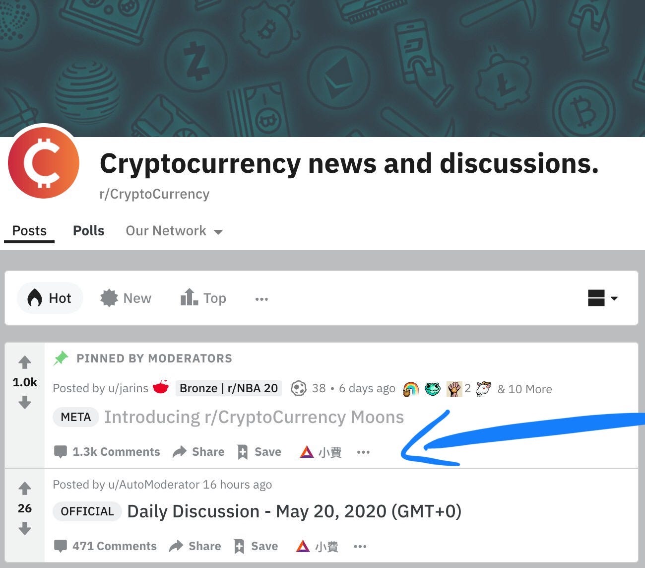 今天起,加密貨幣版將推出以「月亮」為單位的社群積分幣,而要塞英雄版則推出以「磚塊」為單位的社群積分幣。Reddit 未來將會透過以太坊區塊鏈(Ethereum)發行各式各樣的社群積分幣,但目前僅在以太坊的測試網路上試行。