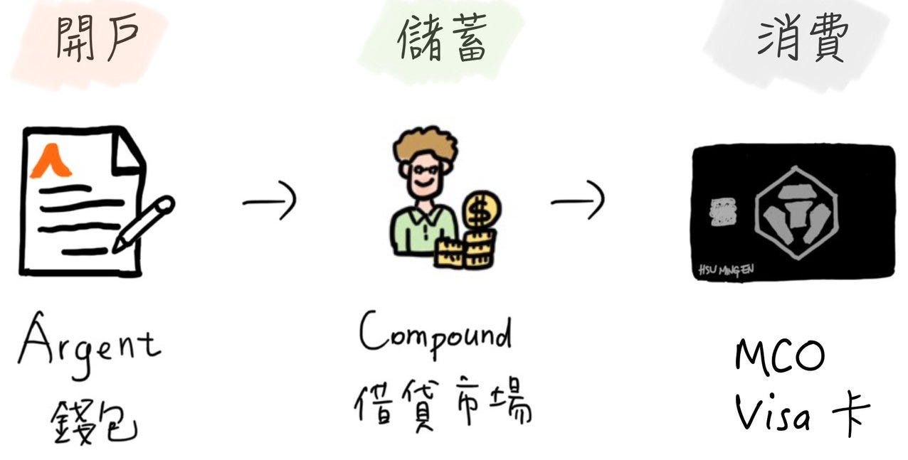 完成開戶、儲蓄之後,消費才是當前去中心化金融的最大瓶頸。絕大多數店家都不提供人們以加密貨幣(即便是價格穩定幣)付帳。除非店家渾然不知。之前我曾介紹過由 Crypto.com 公司推出的 MCO Visa 簽帳卡(debit card),就是由 Visa 替買賣雙方簡化交易流程。讓消費者以加密貨幣付帳,但店家卻能收到港幣。這和在日本星巴克刷卡,人們付的是新台幣,店家收到的卻是日幣相同道理。有了簽帳卡,就等同是讓加密貨幣支付隱形化。