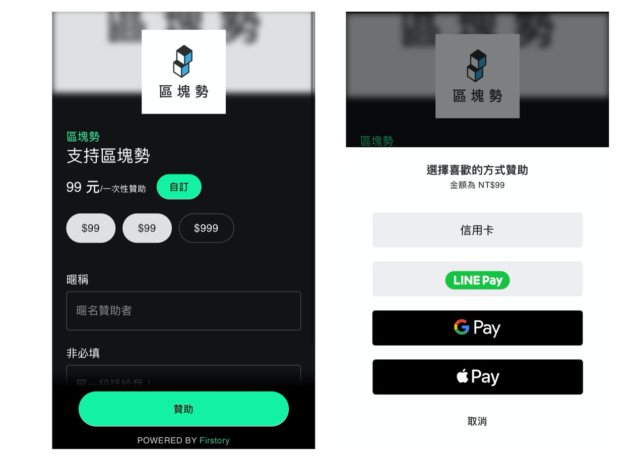 像 Firstory 就主打簡單好用的贊助機制。聽眾點擊網址就能以信用卡或行動支付,小額贊助創作者維持節目營運。只不過願意出錢贊助的人終究是小眾(畢竟沒出錢還是可以聽),而且一次性的小額贊助也難以讓支撐 podcast 節目。