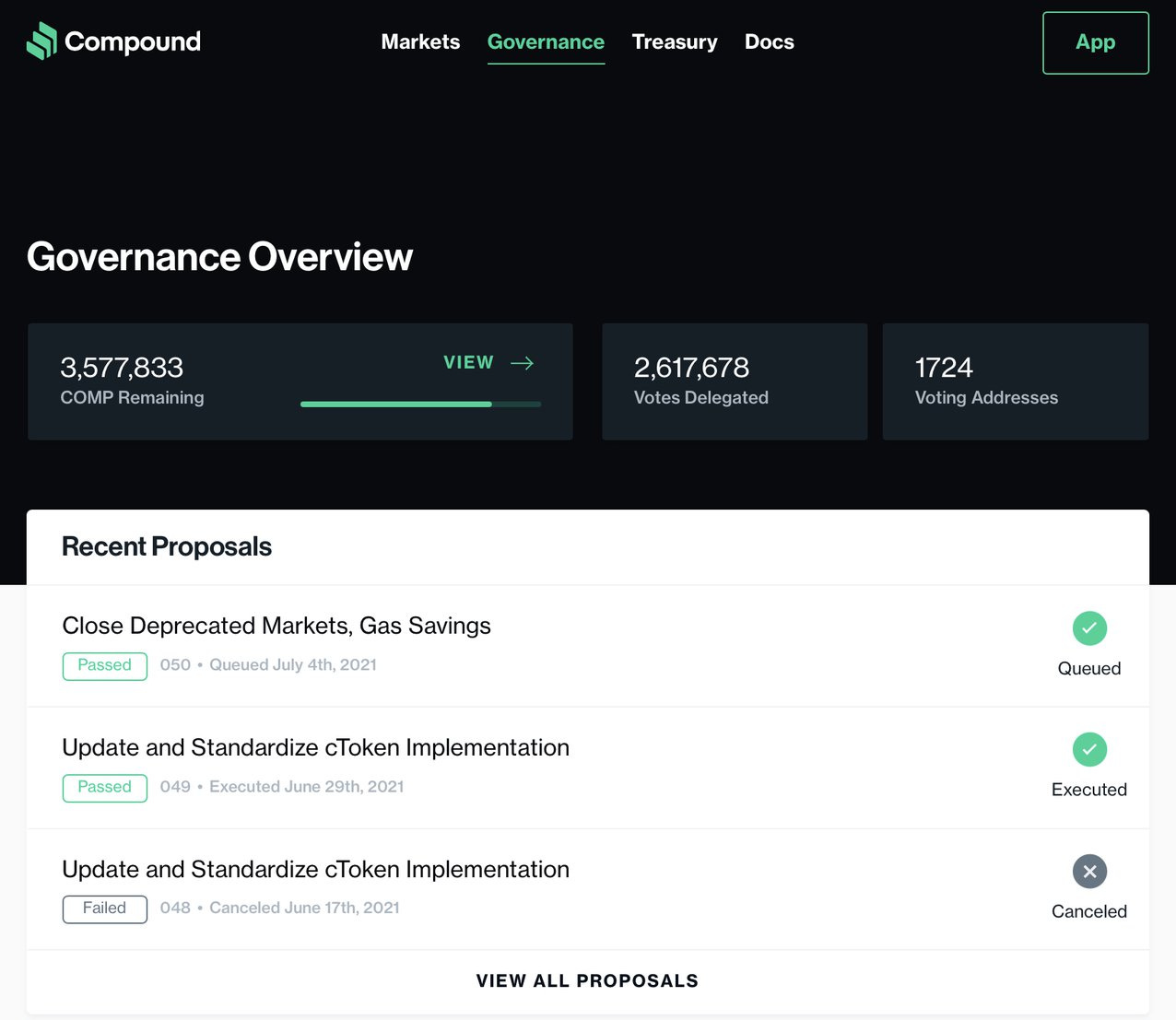 我們很自豪地推出一套全新的治理系統(DAO),以社群治理取代 Compound 開發團隊的管理。社群成員們可以提議、討論和實作對 Compound 的版本更新,而不用再仰賴原有的開發團隊。