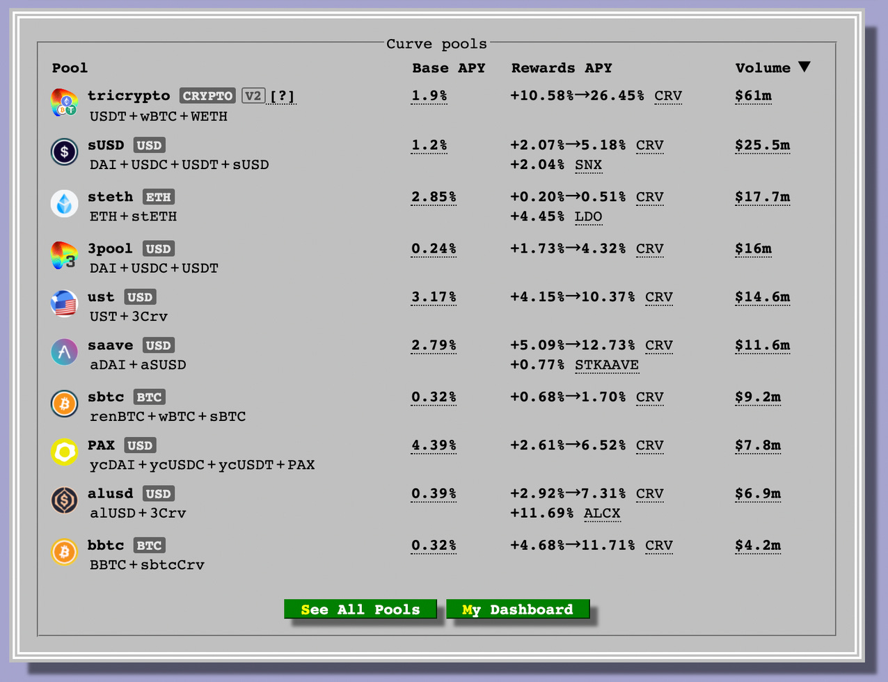 以前我們加入學校合作社的社員,大概不是為了賺取一學期 20 元的獎勵金。但 Curve DAO 的使用者來自世界各地,交易量在過去 24 小時就高達 4,300 萬美金(約 12 億台幣)。若是持有大量的 veCRV 代幣,光是每週分到的被動收入就相當驚人。獎勵金分潤反而成為人們加入合作社的誘因。