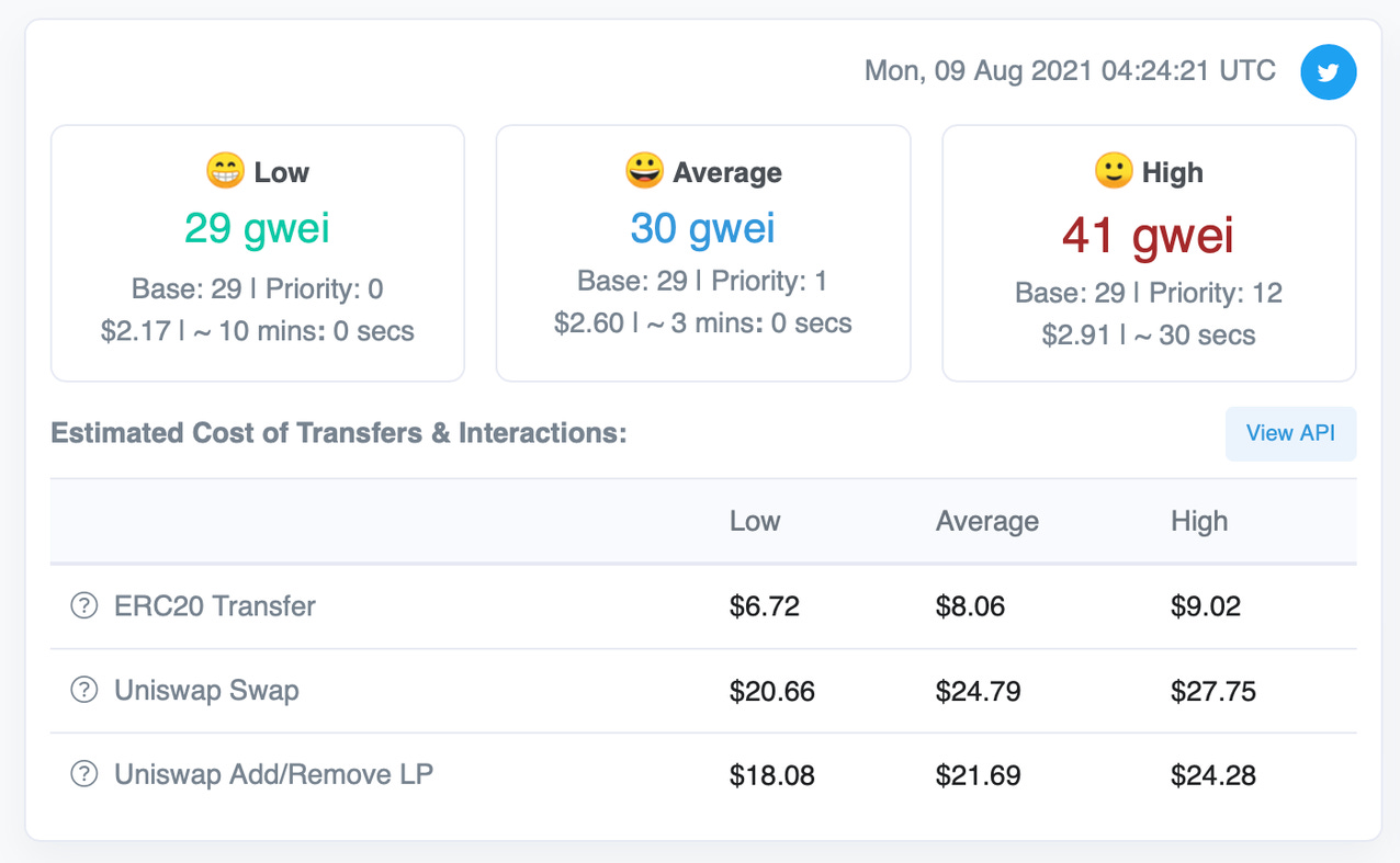 而 EIP-1559 的第一項改動,是能在 Low、Average 和 High 的方框內,明確地顯示出 Base 和 Priority 這兩個數字。看起來簡單,卻是手續費透明化的重要里程碑。