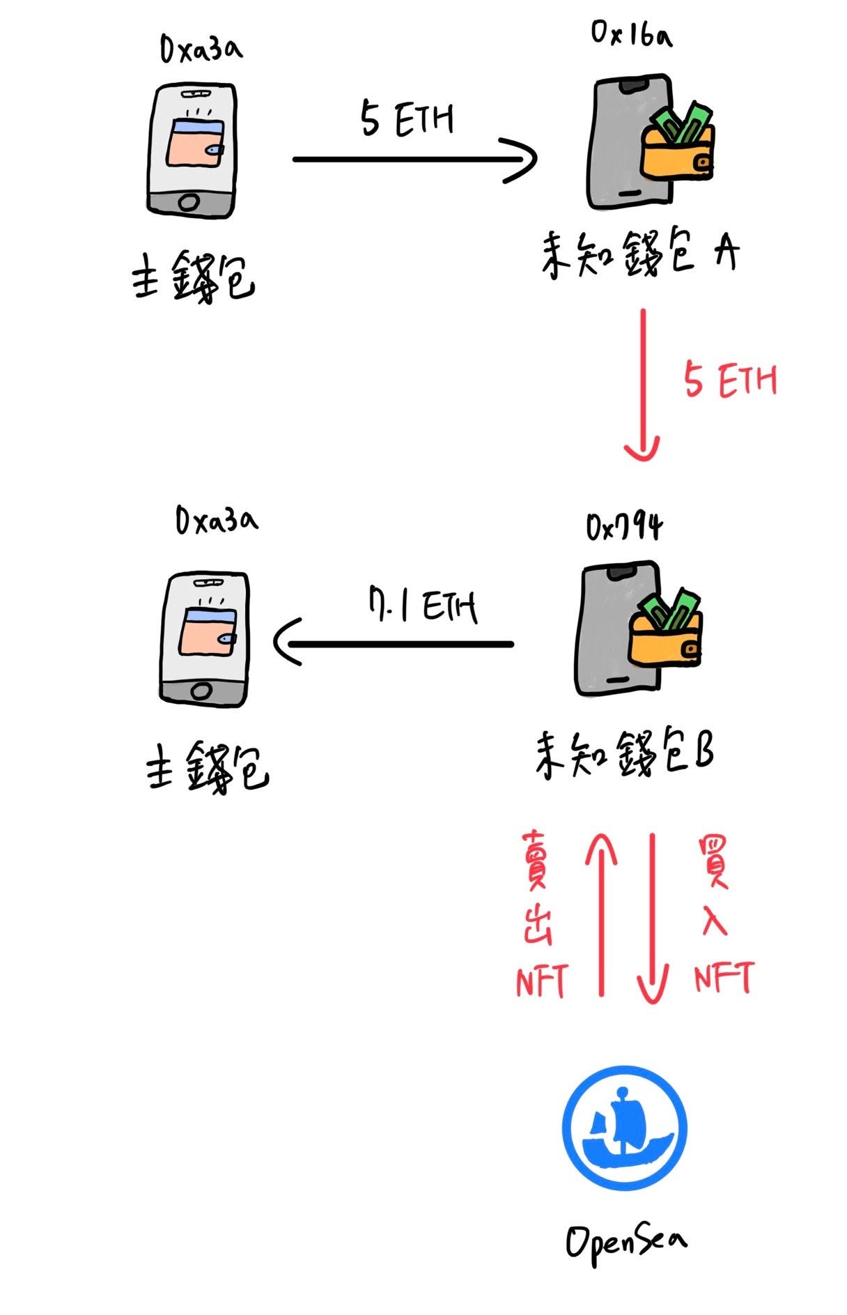 另一位網友 ricefarmer.eth 也循著以太坊的交易紀錄追查,發現 Chastain 是先將 5 顆 ETH 從主錢包轉入子錢包,並購買四款 NFT。沒過多久,OpenSea就在首頁上推薦了其中一款 NFT。而 Chastain 藉此賺進大約 2 顆 ETH 的利潤(約 17 萬台幣),並將獲利全數轉回自己的主錢包。