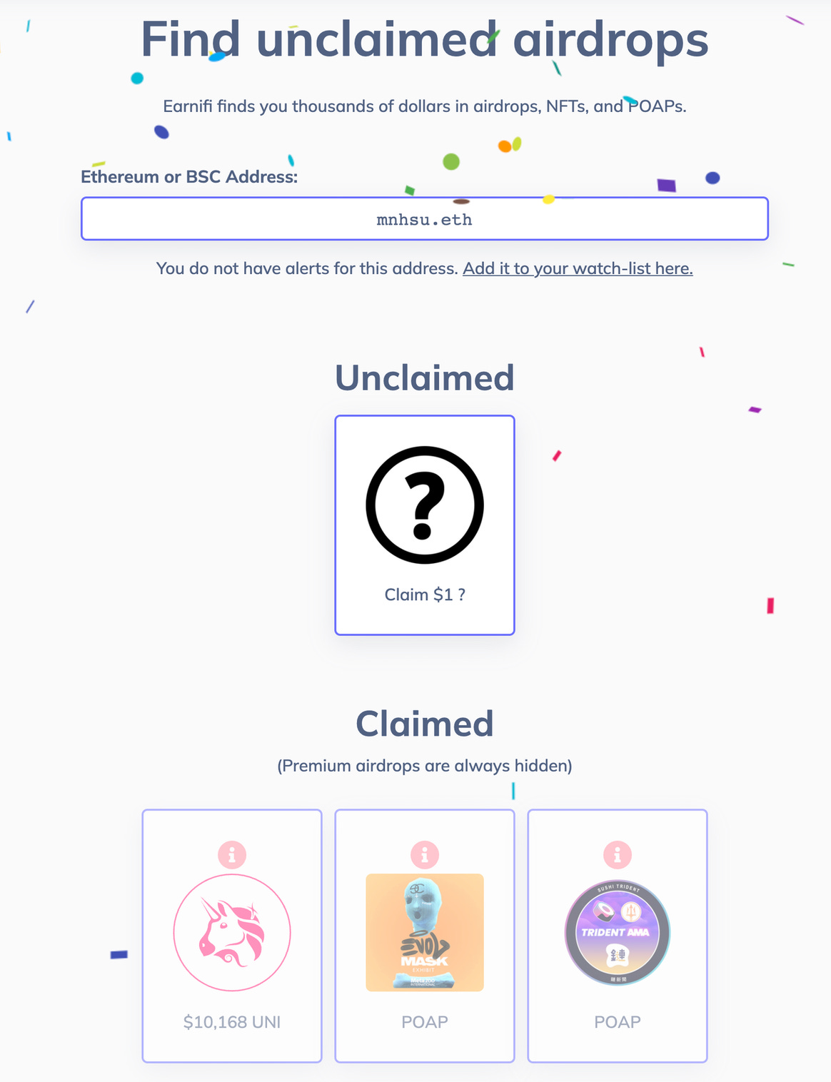 Earni.fi 除了會告訴付費用戶有哪些空投尚未領取,還會在新的空投項目出現時,自動替用戶審查領取資格,並在第一時間以 email 通知。