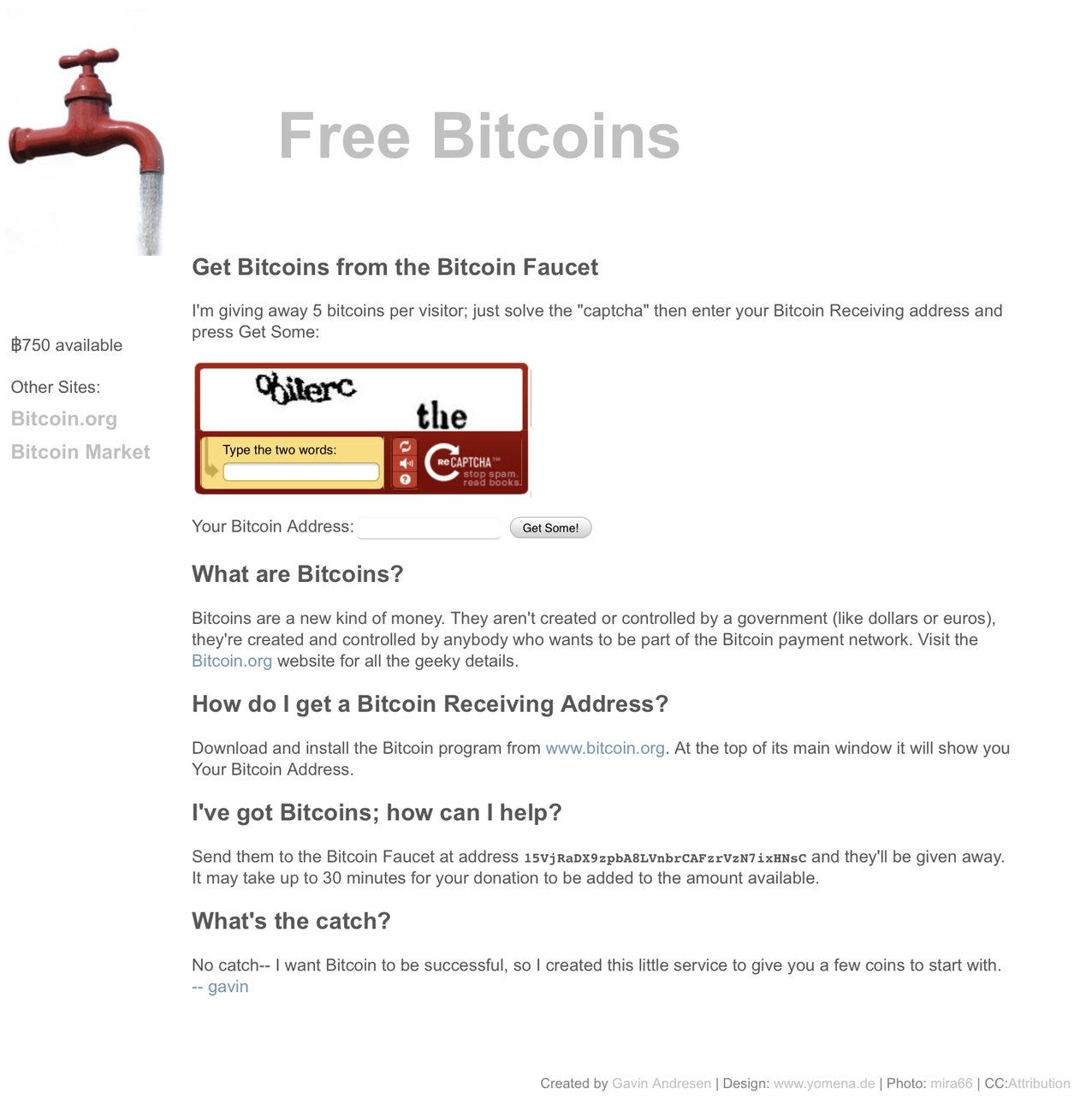 幣從哪裡來?Andresen 自己只貢獻了其中 1,100 顆,其他 1.8 萬顆則來自當時的礦工或大戶捐贈。不知你有沒有發現,Free Bitcoins 網站架設了大半年,而且完全不需身份認證,領取次數卻不到 4,000 次。