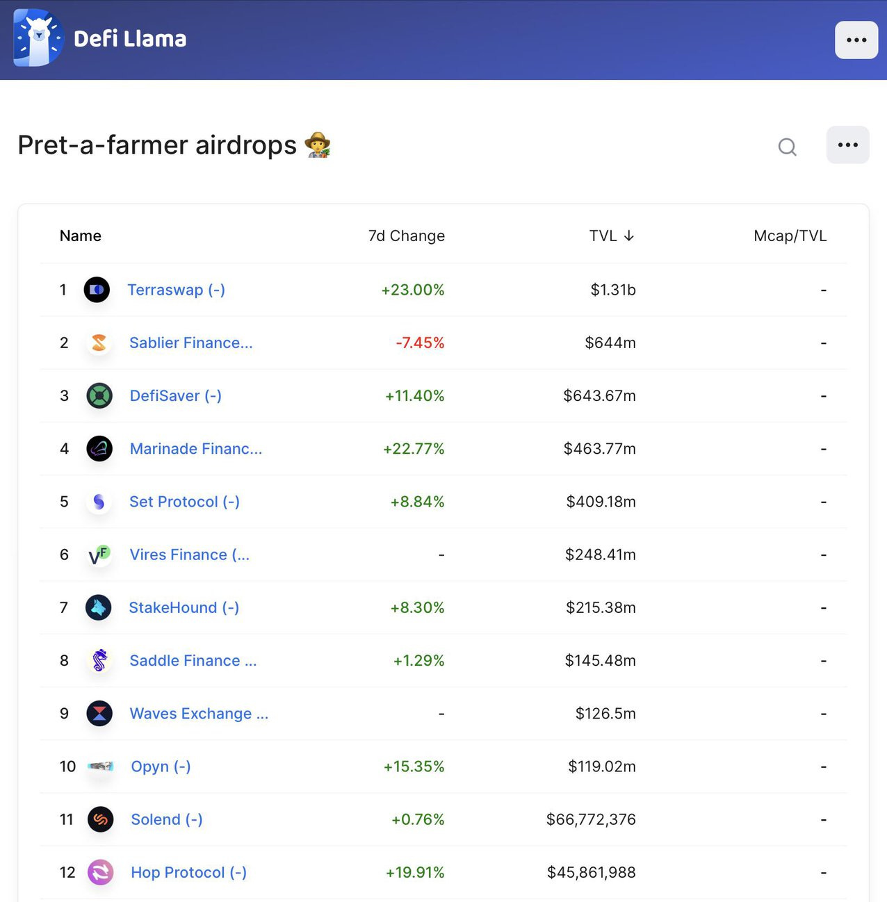 這已經算是公開的秘密。資訊網站 DefiLlama 甚至貼心地替大家整理出還沒發行加密貨幣的熱門 DeFi 排行榜,人們只要「按圖索驥」逐一成為這些應用的使用者,你就很可能成為下一位領到空投獎勵的幸運兒。