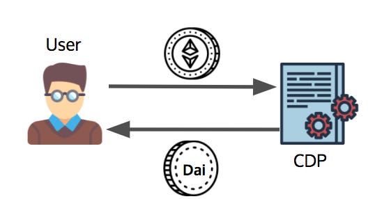 Maker 團隊幫這個智慧合約取了一個名字,叫做 CDP(collateralized debt position)。接下來, 我們進一步看 CDP 如何將以太幣換成 Dai。