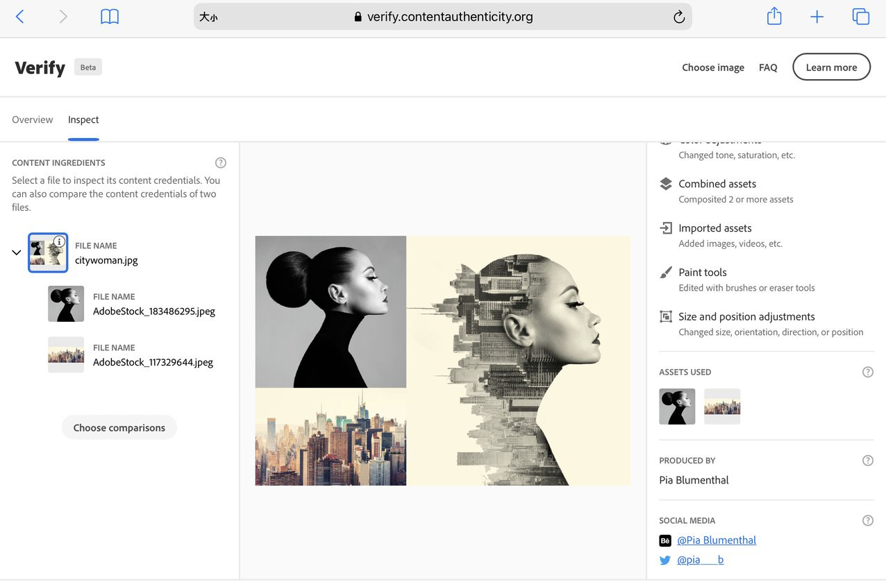 用戶現在可以在 Photoshop 連接個人的社交帳號、加密貨幣錢包地址,並將這些資料加入圖像的內容憑證中,藉此向消費者證明你就是內容的原創者。如果有人要將圖像發行成 NFT,錢包地址就能發揮作用。