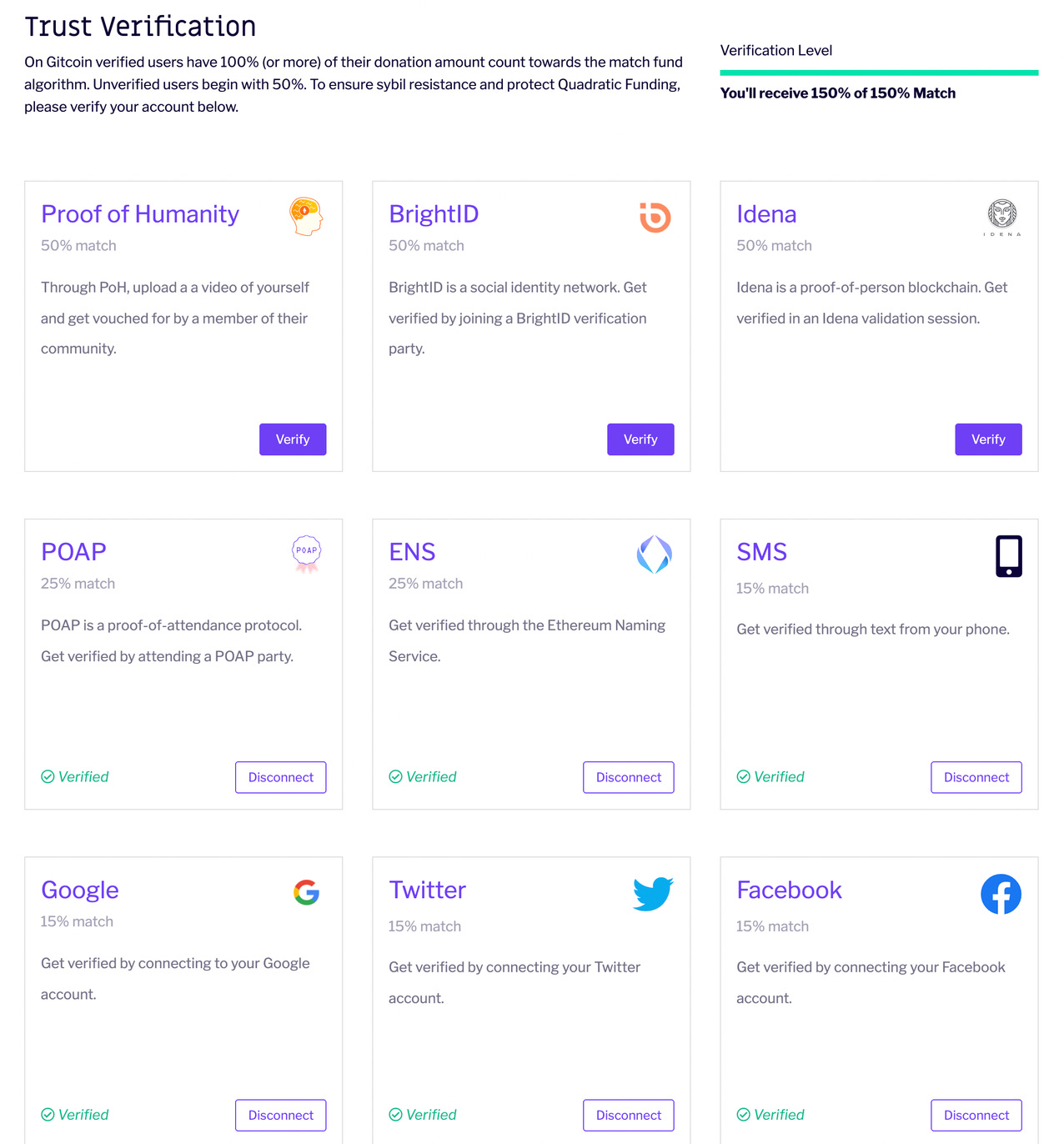 區塊鏈上也有假帳號問題。群眾募資平台 Gitcoin Grants 近期要求提案者以多種方式驗證個人身份,藉此減少「殭屍提案」獲得捐款。其中,使用者錢包裡是否持有 POAP 的 NFT,就成了增加帳號可信度的眾多指標之一。畢竟會參與實體活動或是到元宇宙裡「觀光」的人,比較不可能是機器人。