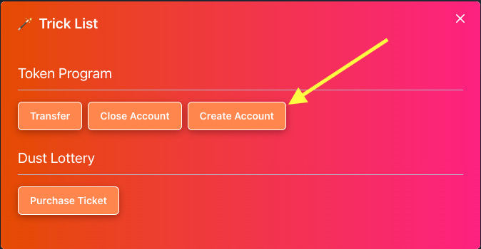 前往 https://beta.soltricks.io/ 它也是由台灣人撰寫的好用工具,不從中抽取手續費,這次我們使用它來開一個租借的 ATA(Create Account),但它當然也提供退租 ATA(Close Account)、轉帳、甚至粉塵樂透的有趣功能。