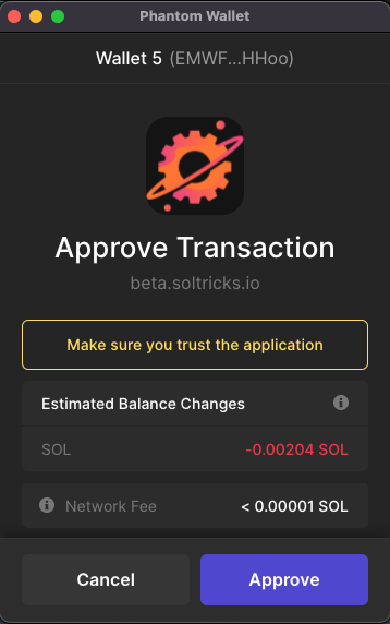 租借 ATA 需要消耗 0.00204 SOL,按 Approve 同意交易