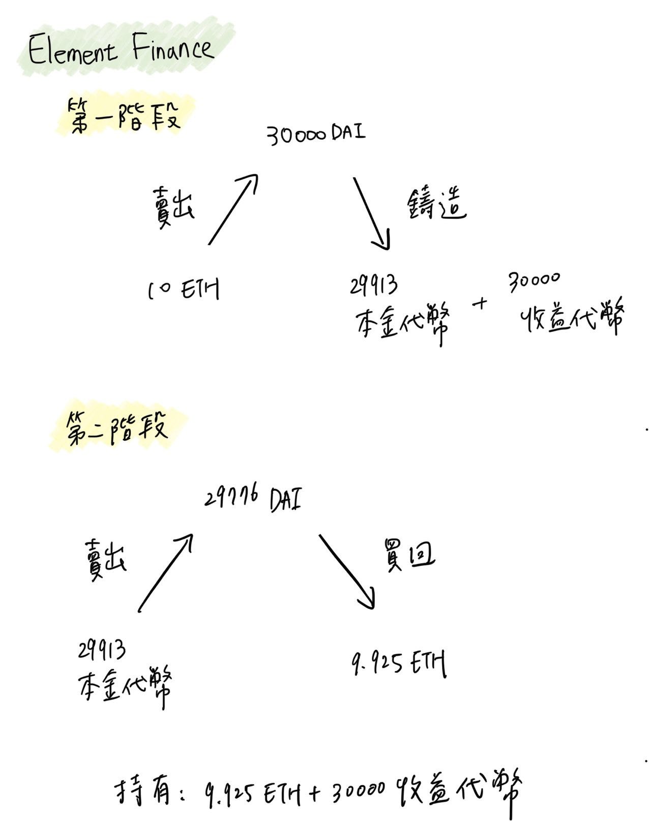 如果投資者懂得使用 Element Finance,他會先將手上的 10 顆 ETH 賣掉,稍晚才重新買回來。