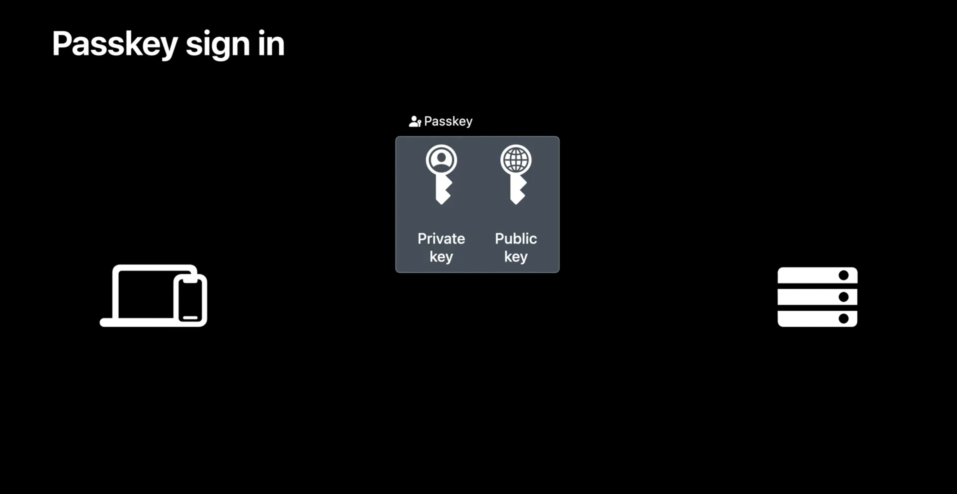 Passkeys 會自動替用戶將私鑰保存在 iCloud 鑰匙圈內。使用者從頭到尾都拿不到明碼私鑰,這就解決了使用者可能弄丟或者被假網站釣魚的風險。