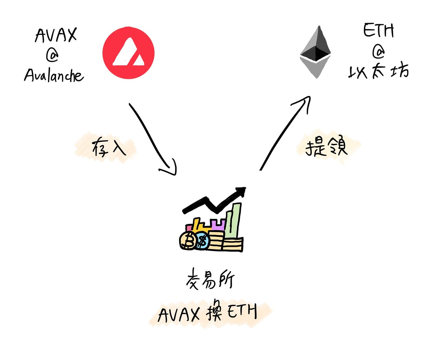 如果以去中心化的跨鏈橋操作,則要先以去中心化交易所將 AVAX 換成 ETH,再透過跨鏈橋轉到以太坊。雖然操…