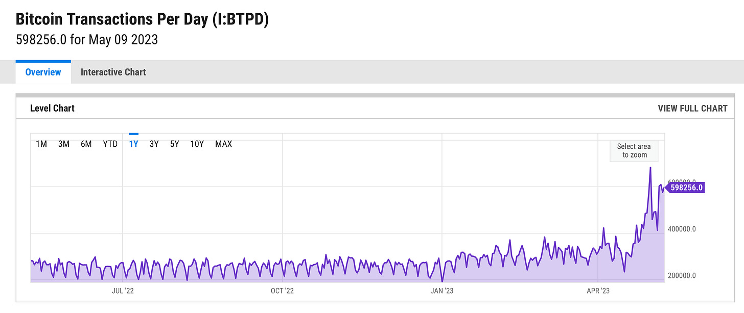 進入正題。這週的最大新聞莫過於比特幣區塊鏈被大量交易塞爆,導致轉帳手續費飆升至 2021 年的牛市水平,甚至對區塊鏈的運作造成一些衝擊,幣安交易所也數度暫停比特幣出金。這篇文章說明比特幣區塊鏈被塞爆的原因,以及它所衍生出來的區塊鏈路線之爭。