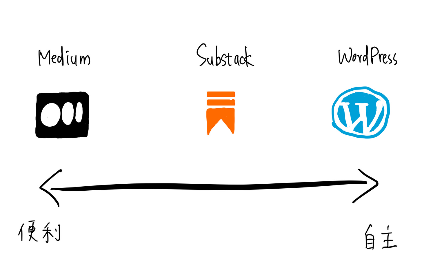Substack 的定位介於 Medium 和 WordPress 之間。它服務大量創作者,按照實際需求開發新功能,作者還可以自行決定打開或關閉,根本是懶人福音。同時 Substack 讓作者保有一定的自主權,更允許作者搬家時,把讀者的直接聯繫方式 —— Email —— 輸出帶走。這讓 Substack 成了最能兼顧便利性與自主性的寫作平台,也吸引不少部落客進駐。