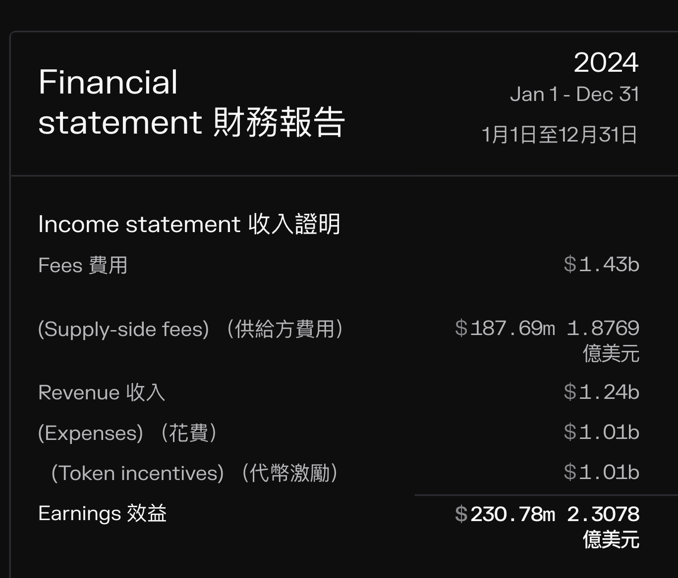 Gary Gensler 當然知道區塊鏈不是上市公司,沒有製作財報、向投資人公開的義務,只是想藉機「噹」區塊鏈不透明,充滿詐騙、市場操縱。但還真的有人依照鏈上數據整理出一份以太坊財報,最大亮點是 2024 年才過不到一半,以太坊就已經賺了 2.3 億美元(約 74 億台幣)!