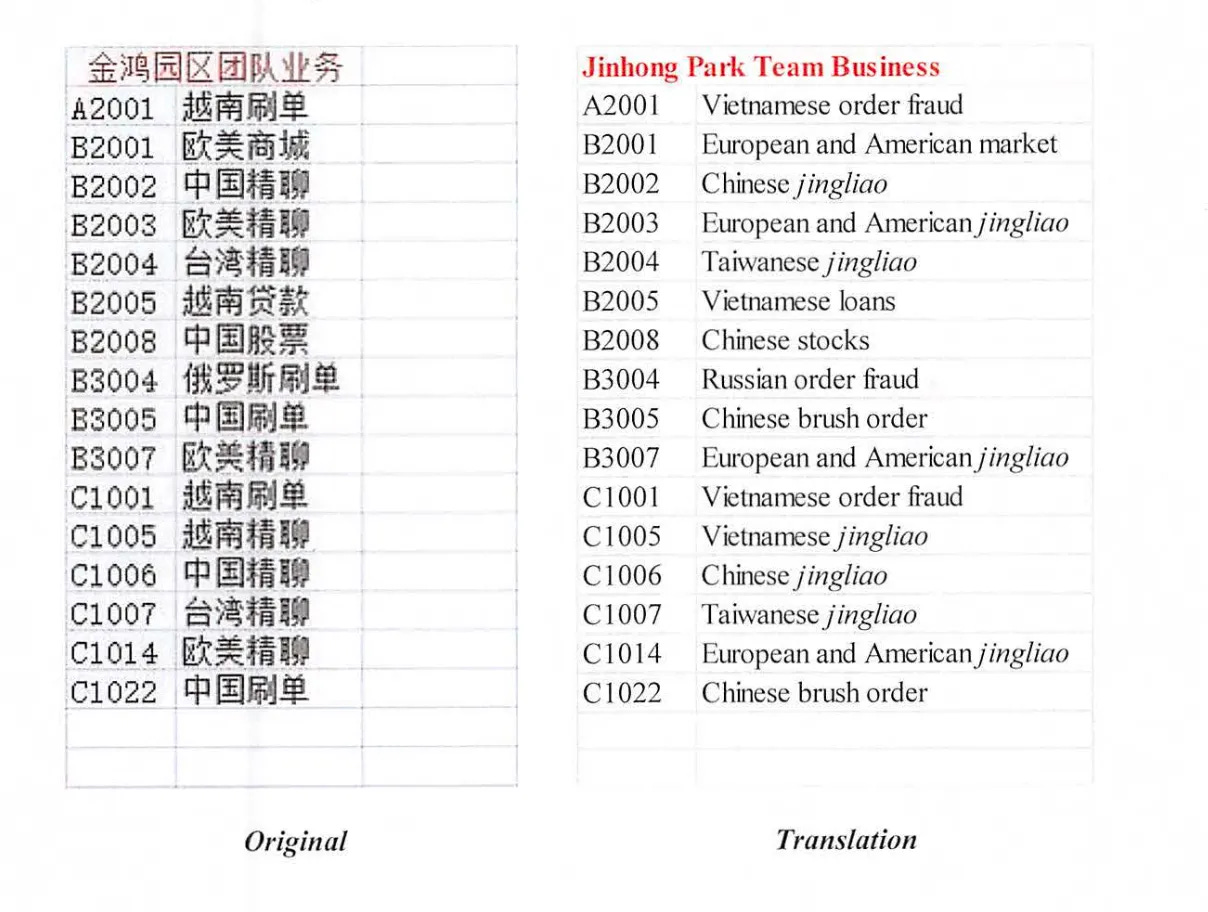 這些人員必須開始執行集團內部稱之為「精聊」的工作,也就是俗稱的「殺豬盤」,透過社交媒體與各國網友建立假的交友關係,培養感情、取得信任,再引誘對方匯入資金。受害者入坑後,會被轉交給另一組負責收錢的人。