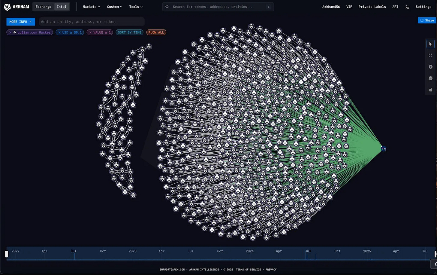 接著是「歸集」。等過一段時間後,這些小錢又會慢慢被收回到幾個主要錢包裡。時間拖得越久,就越難還原金流的脈絡。