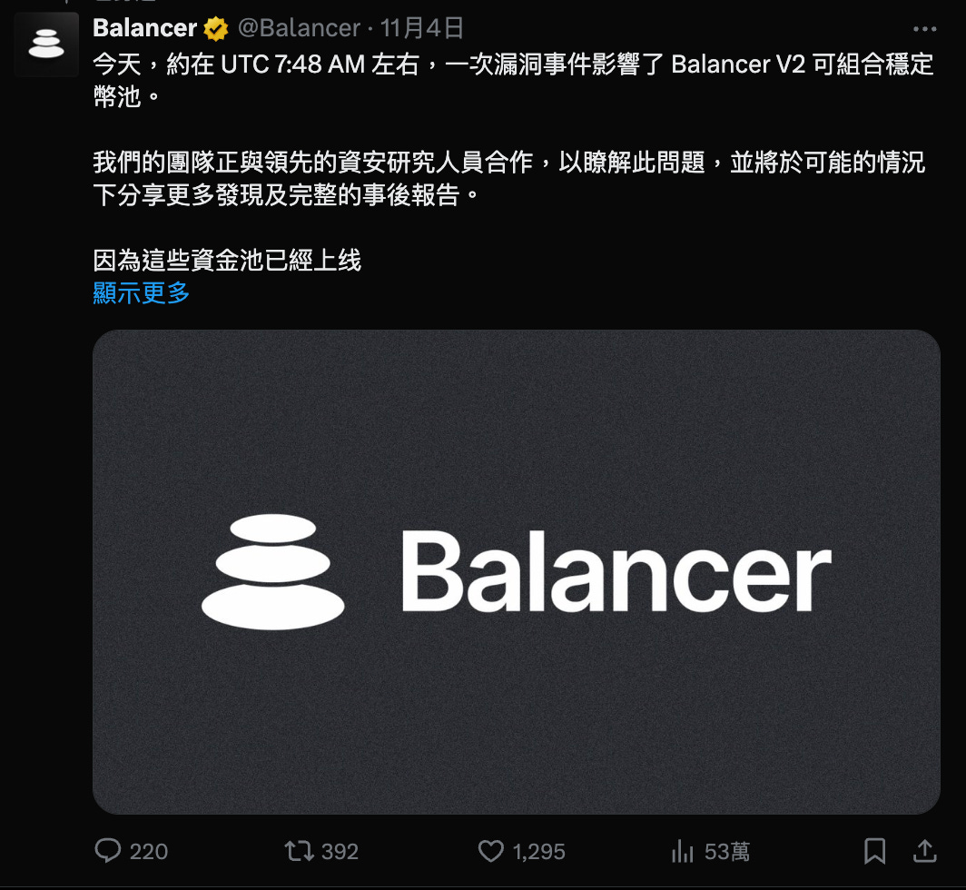 在多數駭客事件裡,這已經是最差狀況。但對 Balancer 來說,這還只是連鎖反應的開始。