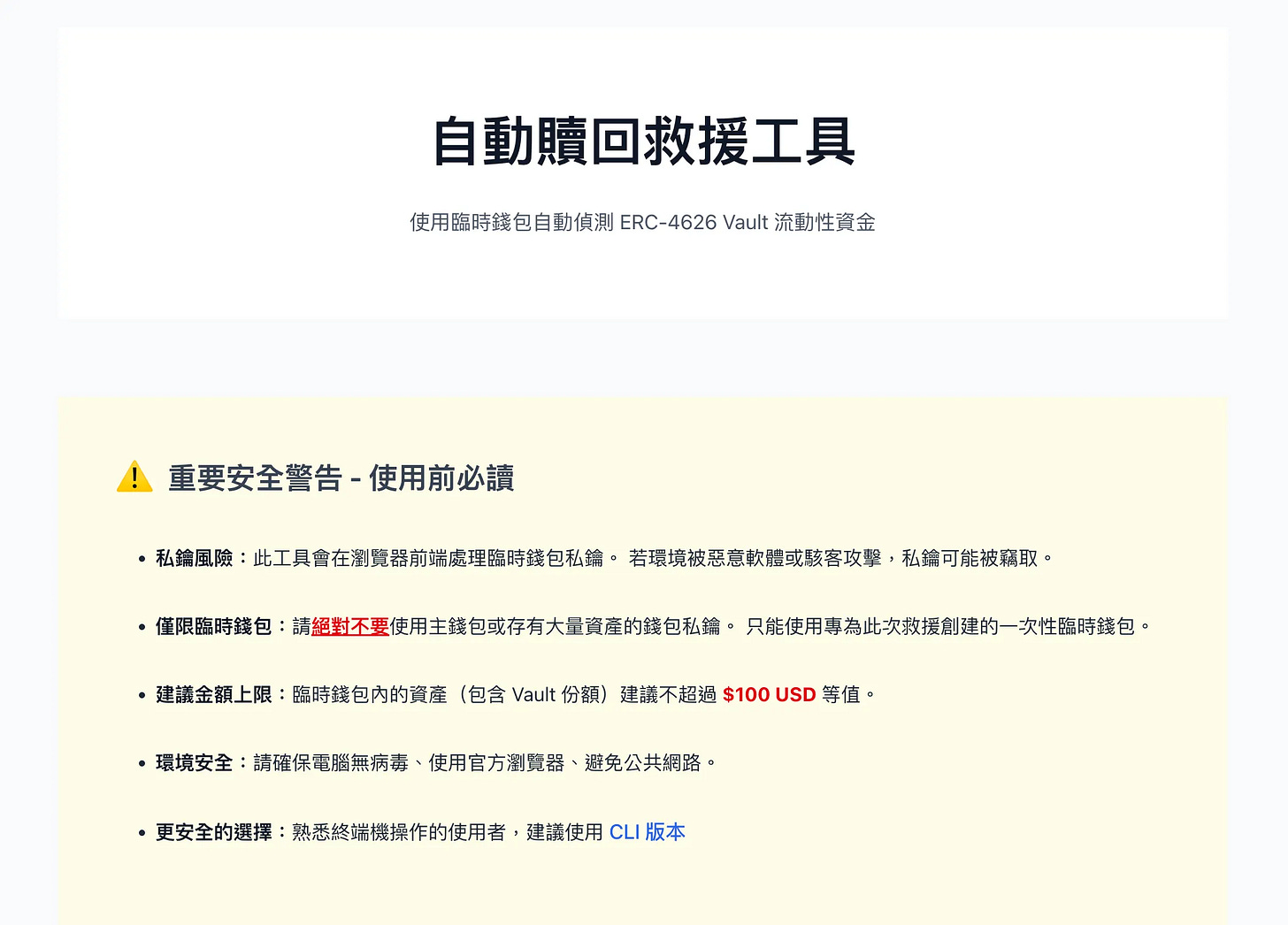 過去幾天,許多人和我一樣 —— 以為 Balancer 被駭、Stream Finance 壞帳跟自己無關,直到要提領時才發現資金被卡住。Anton 的工具救回了不少人的錢。但這套工具沒有前端介面,必須以終端機操作,門檻不低。好消息是,現在它已經有網頁版了。我會先說明這套工具如何使用,再分享背後的開源接力故事。