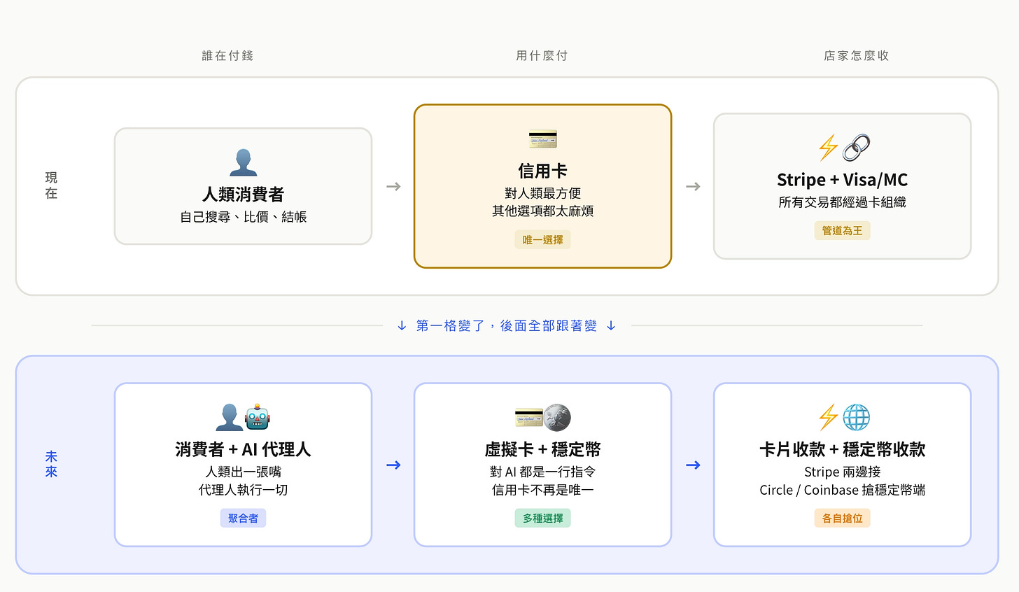 身分決定 AI 能不能代表人類行動,支付則是它能否真正完成交易。前者還在找標準,後者已經先打起來了。