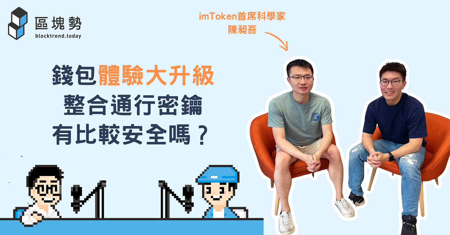 這集邀請 imToken 首席科學家陳昶吾錄音,討論近期 Trust Wallet、Coinbase Wallet 紛紛整合的通行密鑰(passkey)機制。我要請教昶吾的問題很簡單,錢包整合通行密鑰是未來的發展趨勢嗎?整合通行密鑰之後,錢包的安全性有因此受到影響嗎?