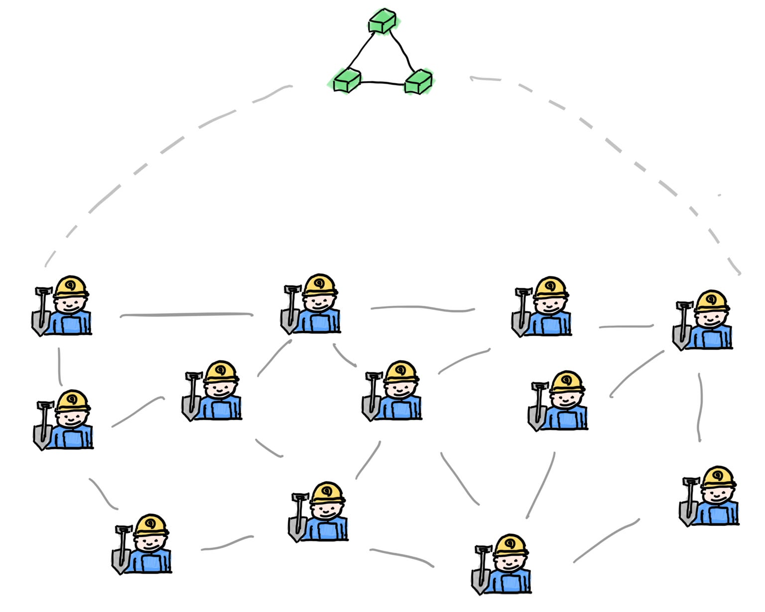 礦工負責保管存簿、驗證交易和記帳。比特幣區塊鏈上有將近 1 萬名礦工,他們彼此獨立且互不相識,但各自都有一份最新版本的存簿。因此,駭客竄改其中一份存簿(例如替自己帳戶餘額多一個零)並沒有效果。因為大家的版本都跟它不一樣,很快就知道這是偽造的存簿。