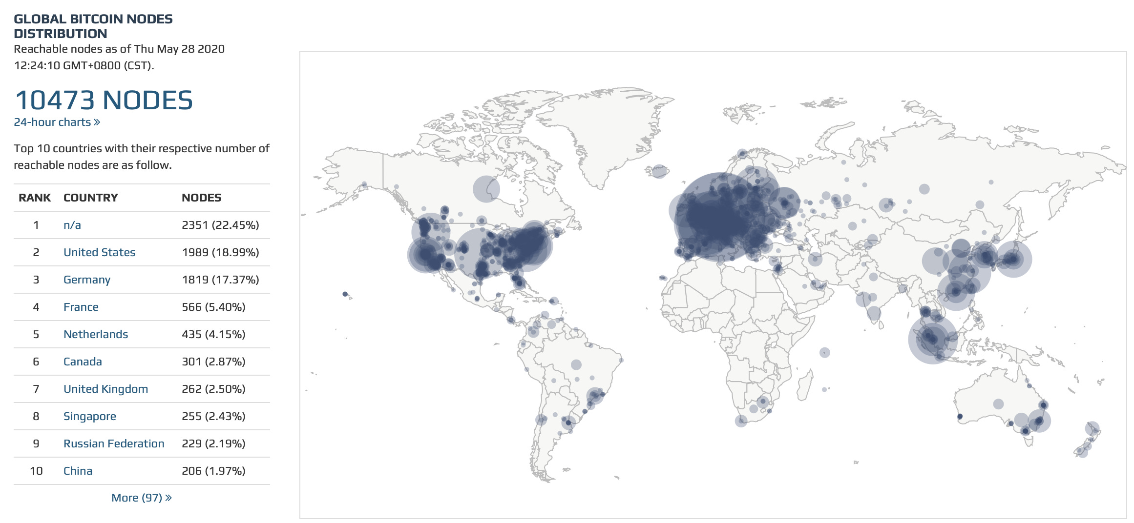 不穩定的安全性:比特幣的安全性仰賴多少礦工願意加入,並貢獻電腦運算能力。因此「挖礦」這套誘因機制必須吸引到足夠的礦工。如果礦工不足,其實區塊鏈並不一定多安全。下方是全球比特幣礦工分佈圖。【區塊鏈該如何兼顧安全、效率及開放性】、【一日駭客:淺談 51% 攻擊】